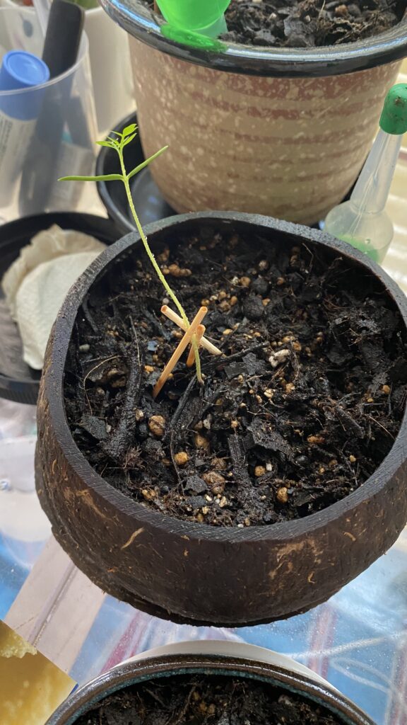 その後の1週間でもう二つ発芽した。残りの2粒は発芽しなかった。